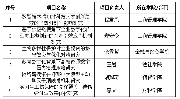 根据《浙江财经大学东方学院关于浙江省教育厅科学研究项目的管理办法》(浙财大东科〔2024〕2号)文件相关要求,学院组织专家进行评审,以下6项拟立项为2025年浙江省教育厅一般科研项目,现将评审结果予以公示。